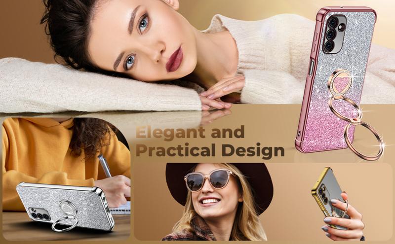 💖 2-Way 360° Ring Stand: The case features a heart-shaped ring that can fold 180° and rotate 360°. It supports both portrait and landscape modes with multiple adjustable angles. It provides convenience for reading, browsing, watching movies, or Facetiming.