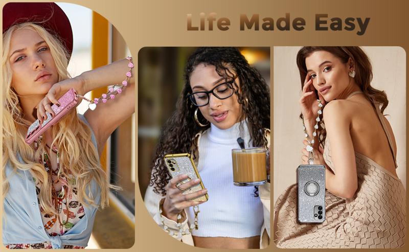 💖 Cute and Timeless Design: With a gold electroplated edge, a heart-shaped ring kickstand, and a mini-hearts wrist strap chain, this case adds elegance and charm. It is a perfect gift for special occasions like Anniversary Day, Mother's Day, birthdays, Christmas, and Valentine’s Day.